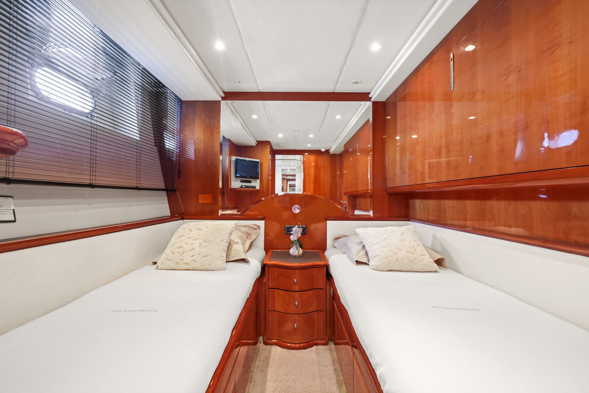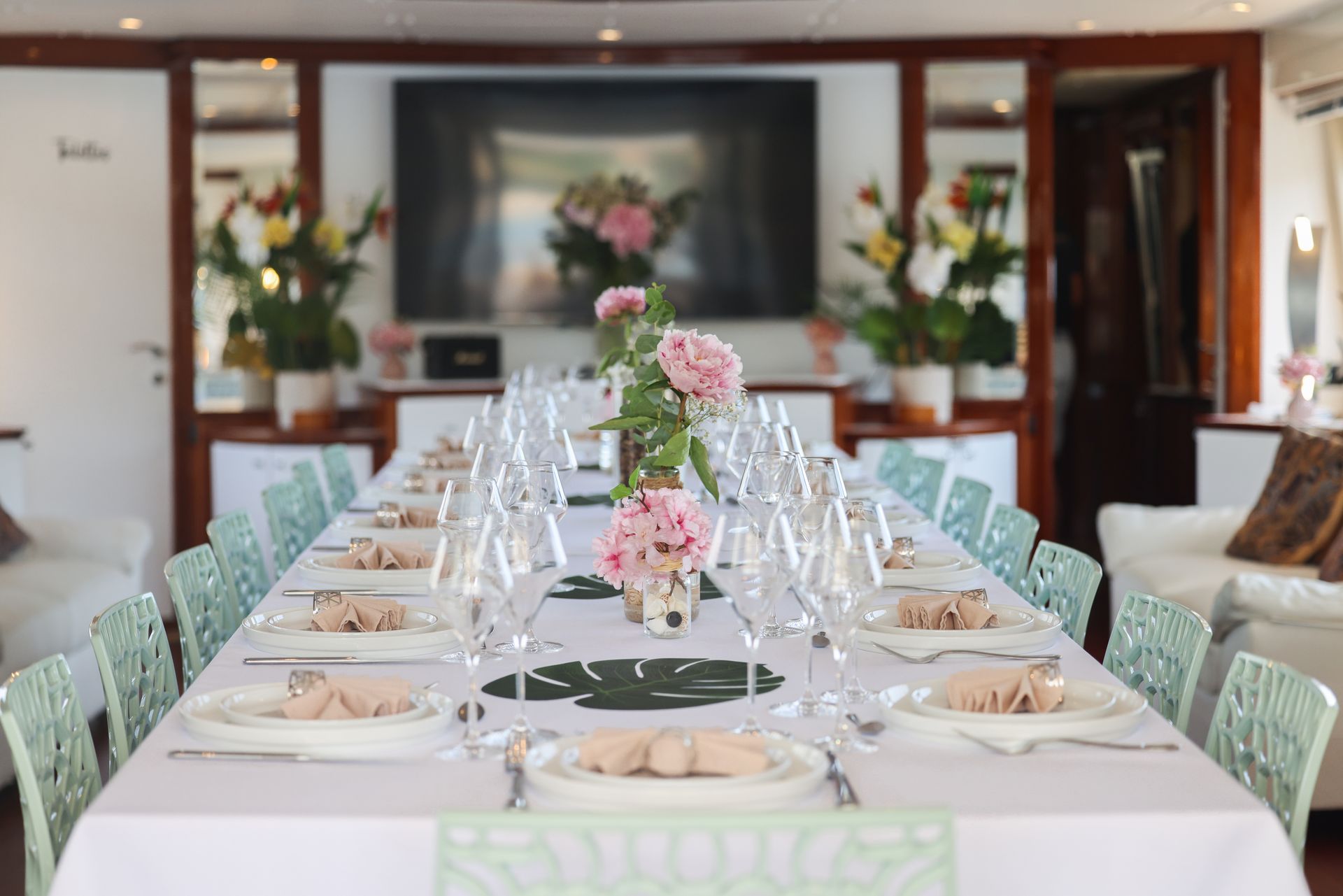 ACCAMA DELTA is capable of accommodating up to 10 guests through four cabins, all located on the lower deck and accessible via a staircase on the main fore-deck. The cabins are composed of a spacious master cabin, a VIP cabin and two twin cabins, each with a pullman bed, providing an ideal retreat for your exclusive vacation. Each cabin has a fully equipped ensuite bathroom, ensuring a comfortable and private experience that allows for a break from the outside world. On the main deck, a comfortable salon and dining area provide a cozy and inviting atmosphere for entertaining guests or enjoying a peaceful evening in.