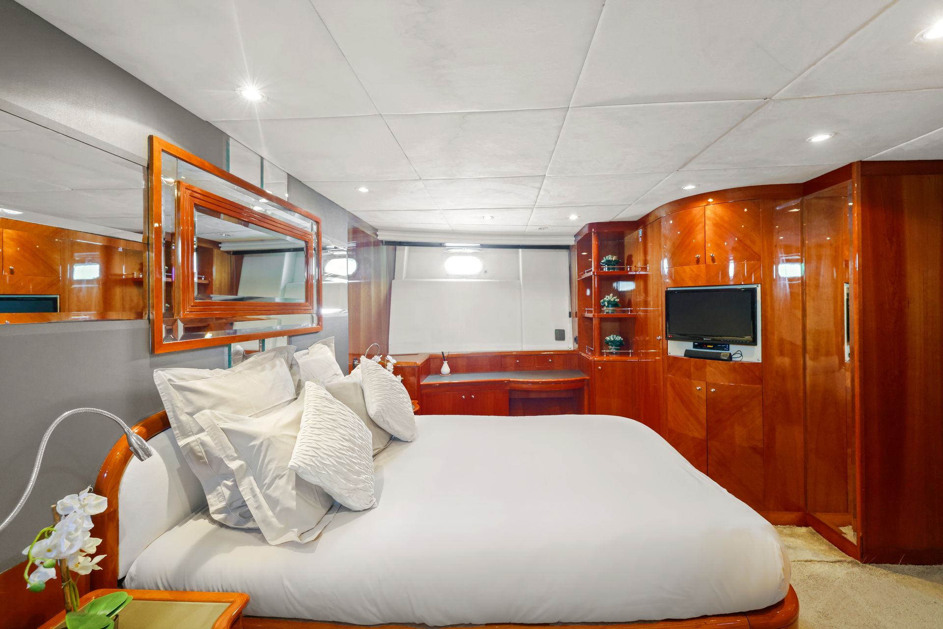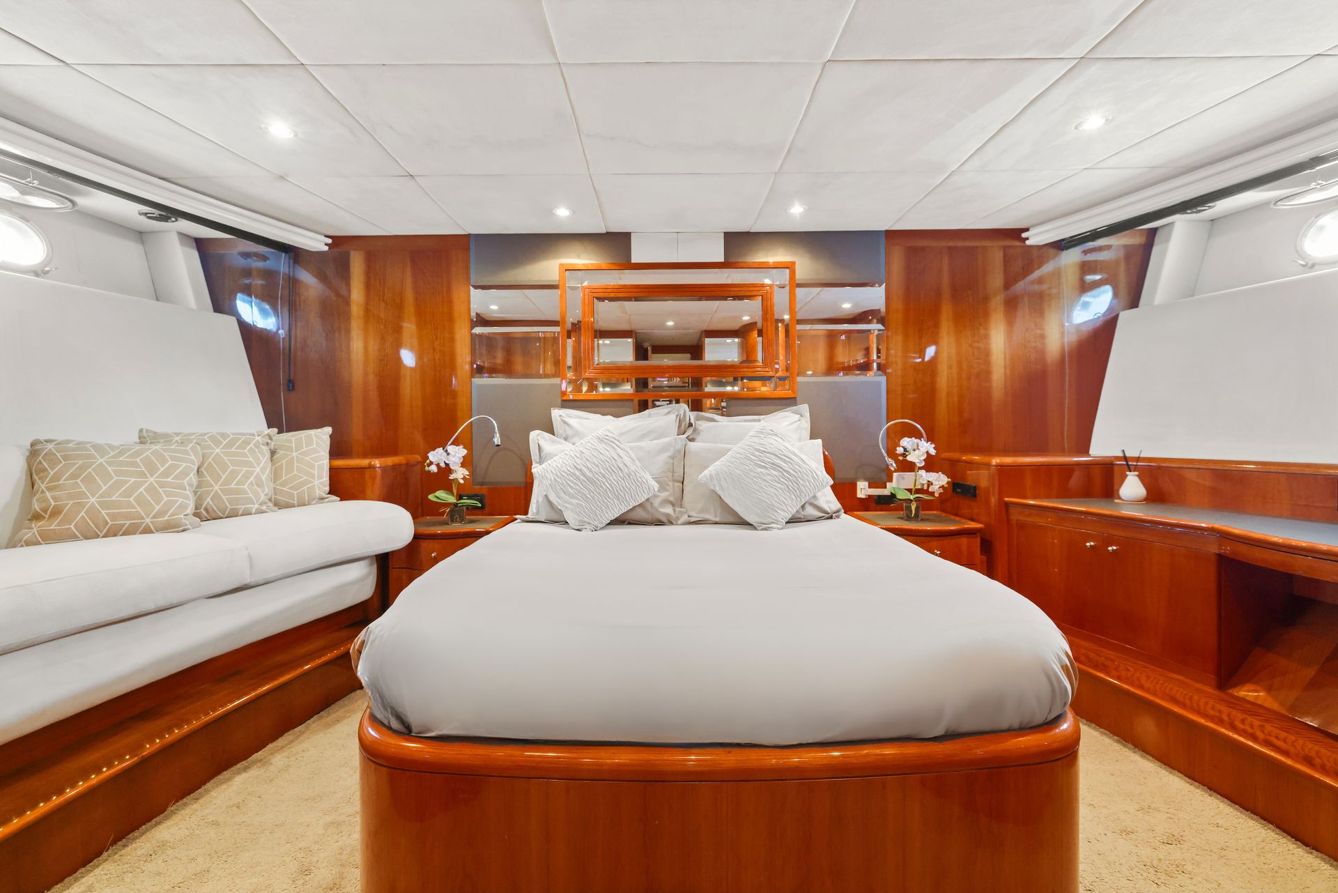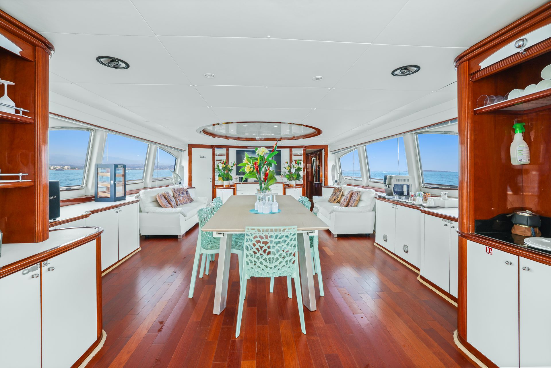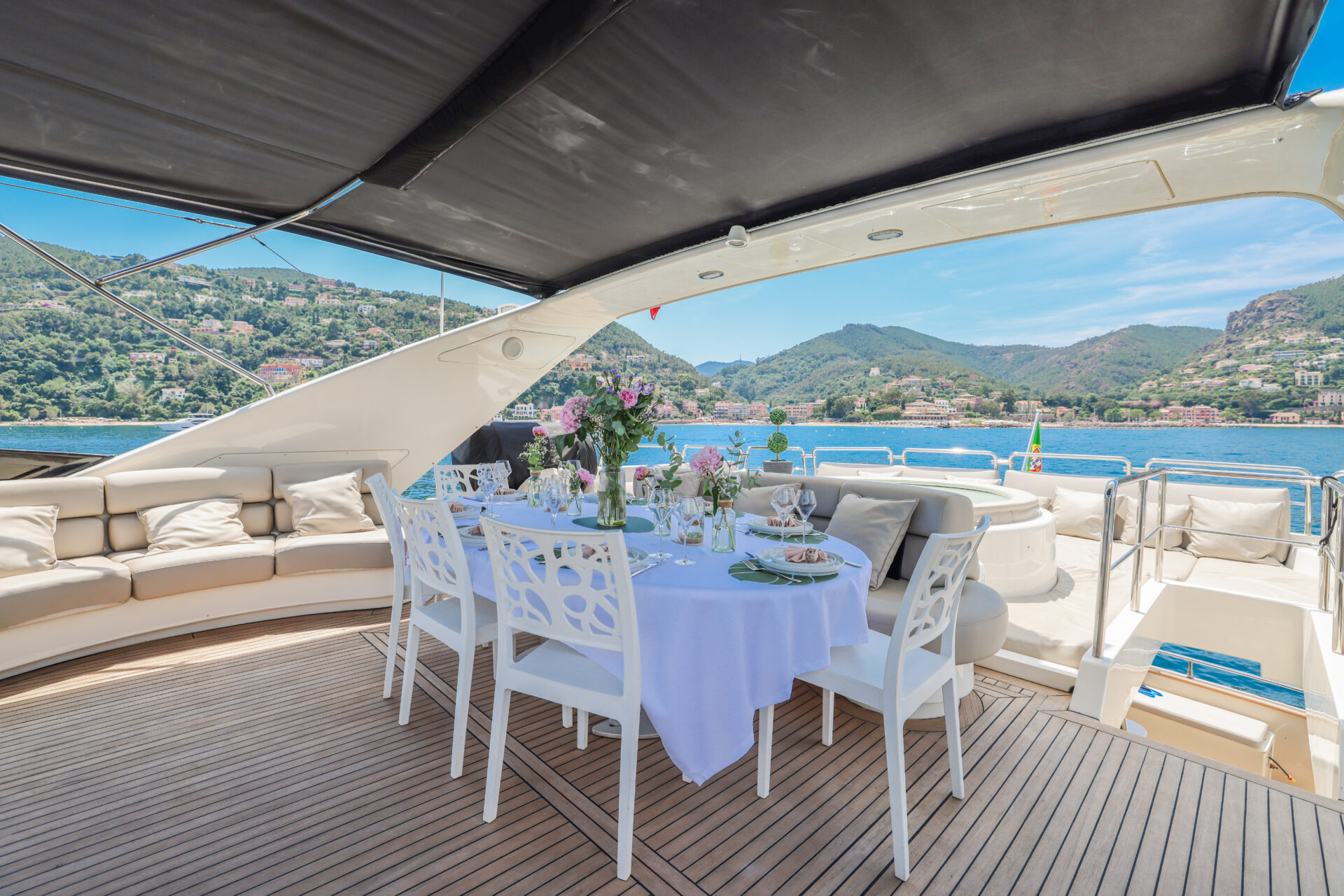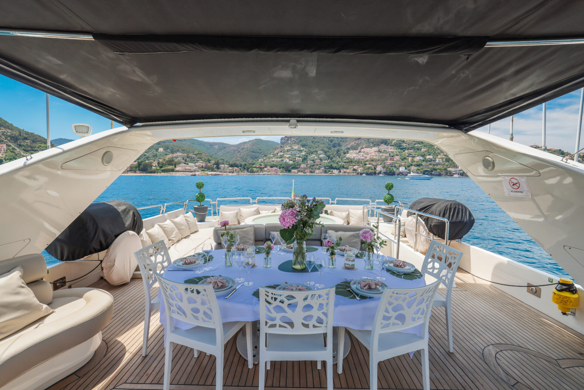 Built in 1999 by Azimut and refitted in 2024, this impressive 30 meter vessel is the perfect choice for those looking for an unforgettable charter experience. Her layout is the perfectly thought out to enjoy a day out a sea. Relax in the upper deck jacuzzi or soak up the sun from her sunbeds on the bow, sip on a cocktail at one of the many seated table areas, go for a seabob adventure at sea; options are endless!