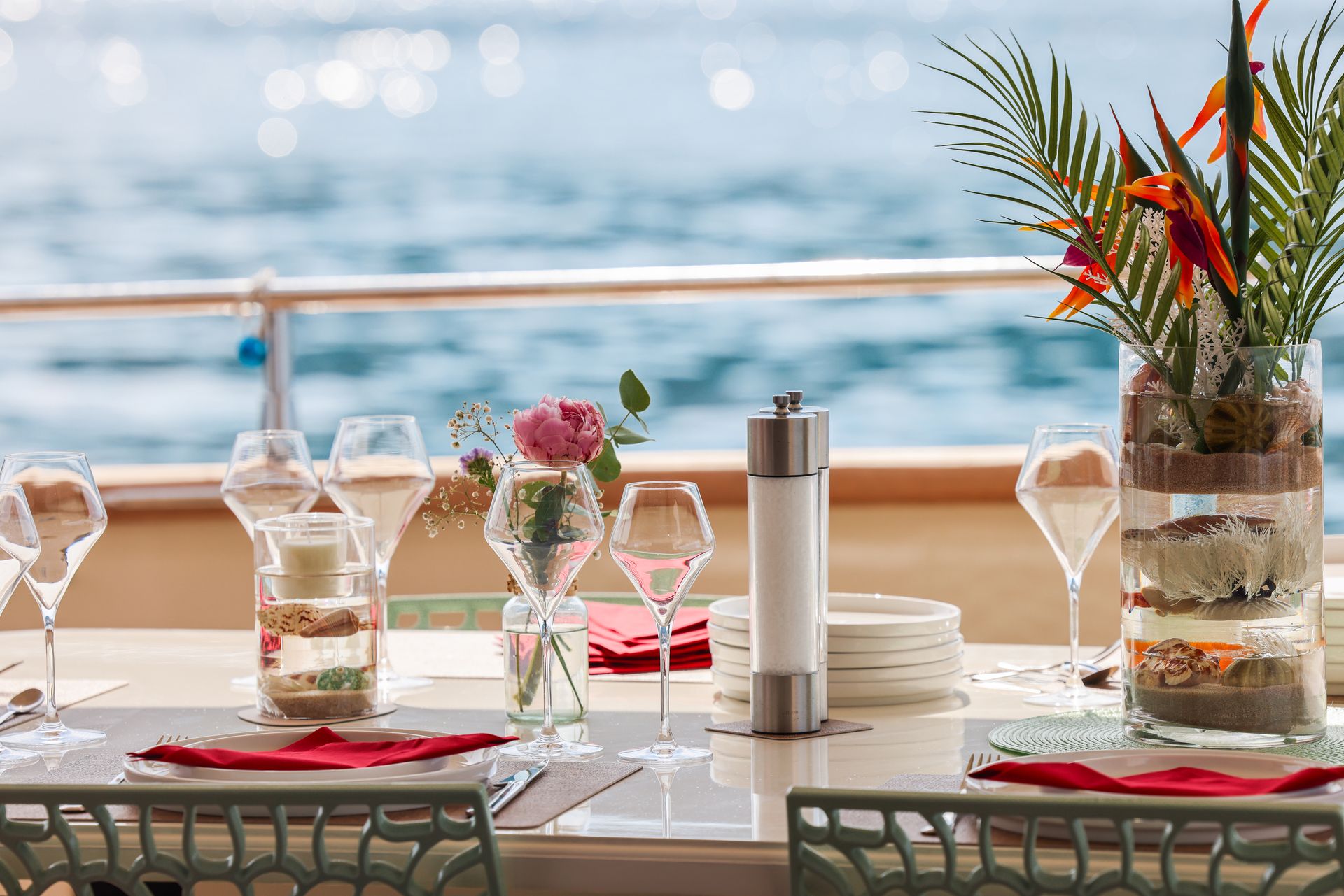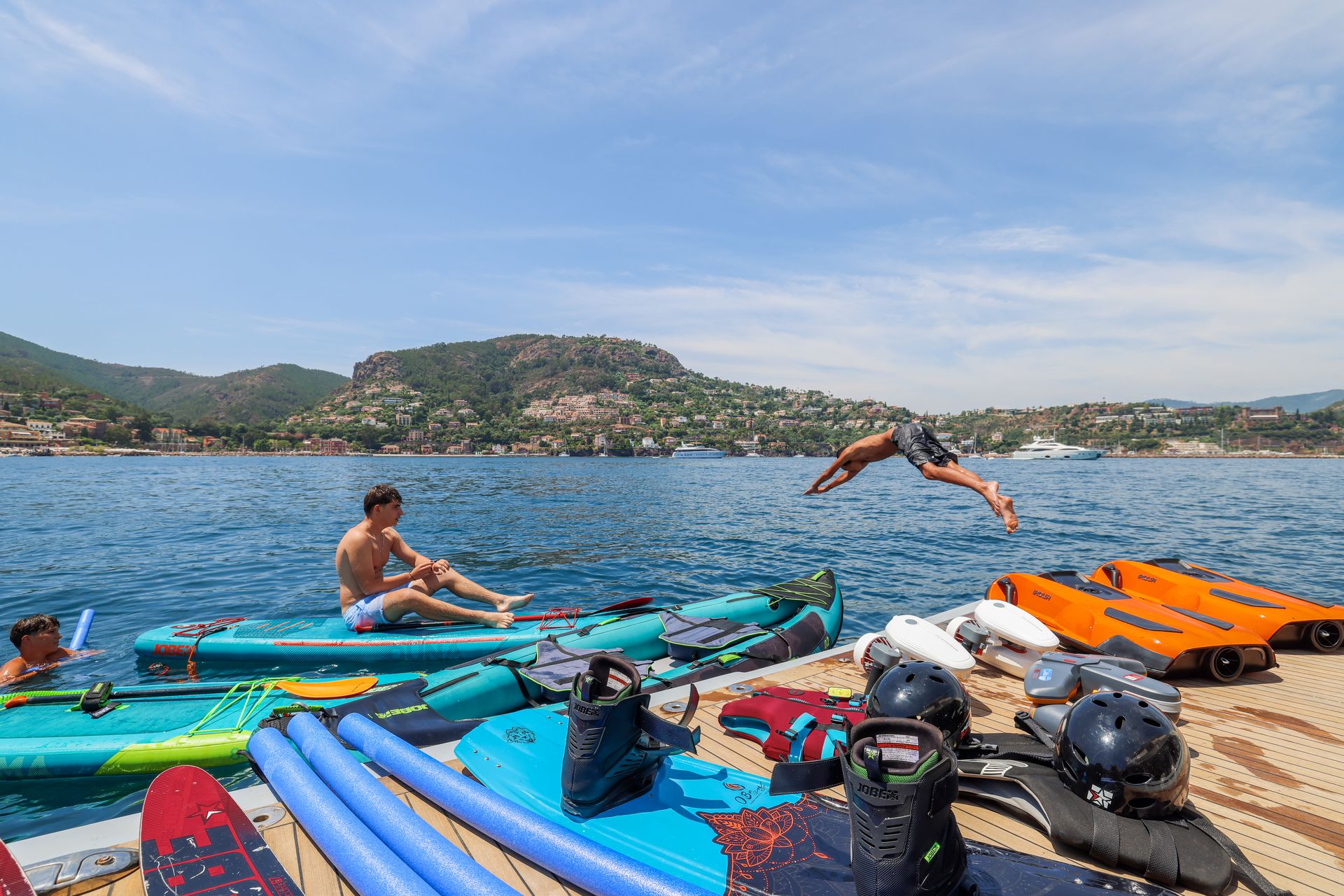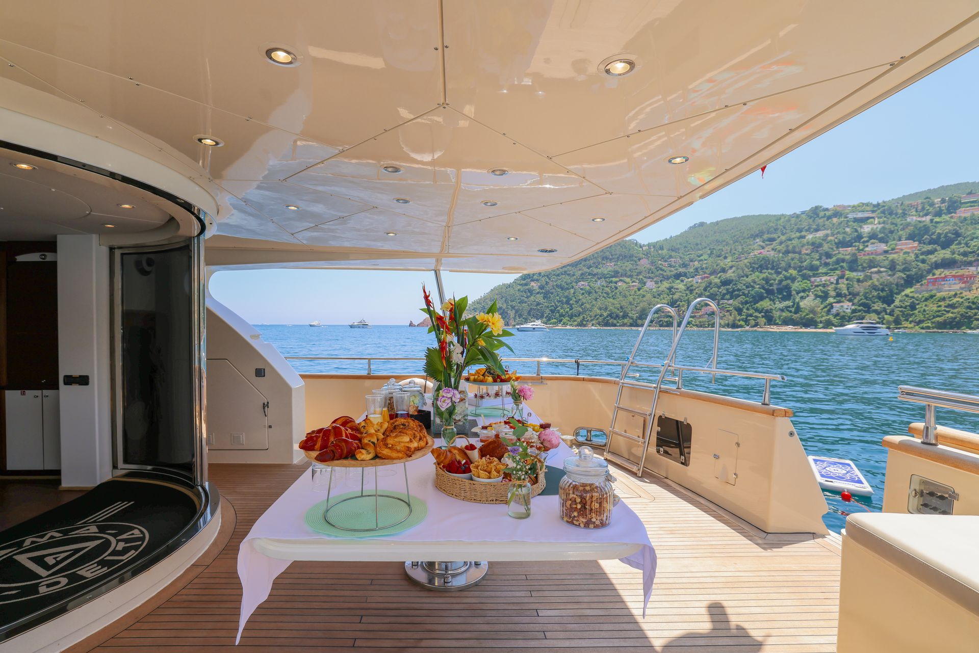 ACCAMA DELTA is one of the very few high-capacity motoraychts available for charter in the Mediterranean. She is licensed to cruise with up to 36 guests making her ideal for special events or large family and friend groups. Serviced by 5 international crew members, who are known to go above and beyond client expectations, captain Mathieu’s team will truly make your experience onboard ACCAMA DELTA memorable!