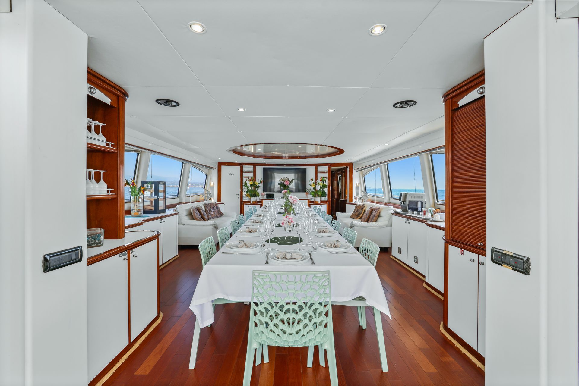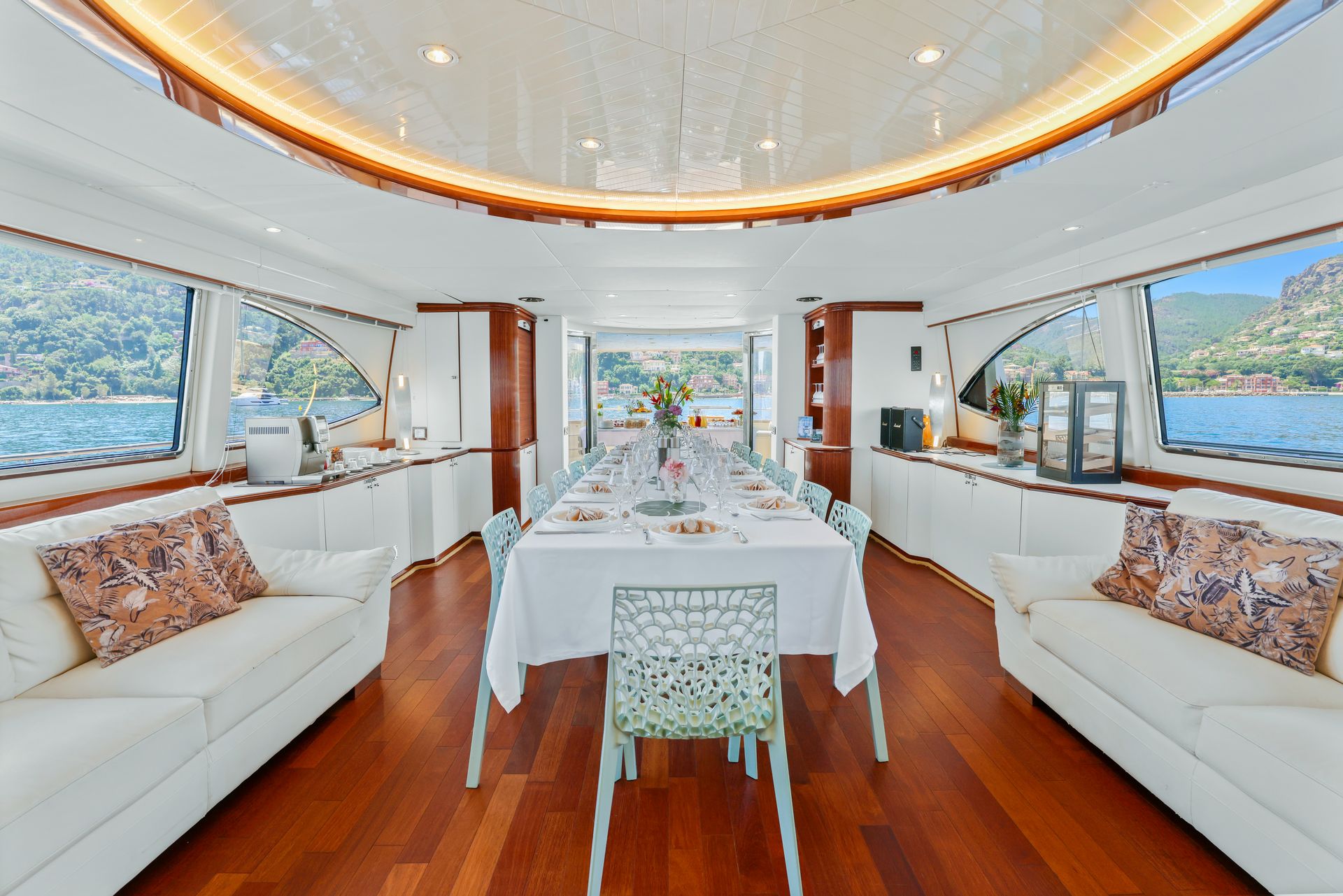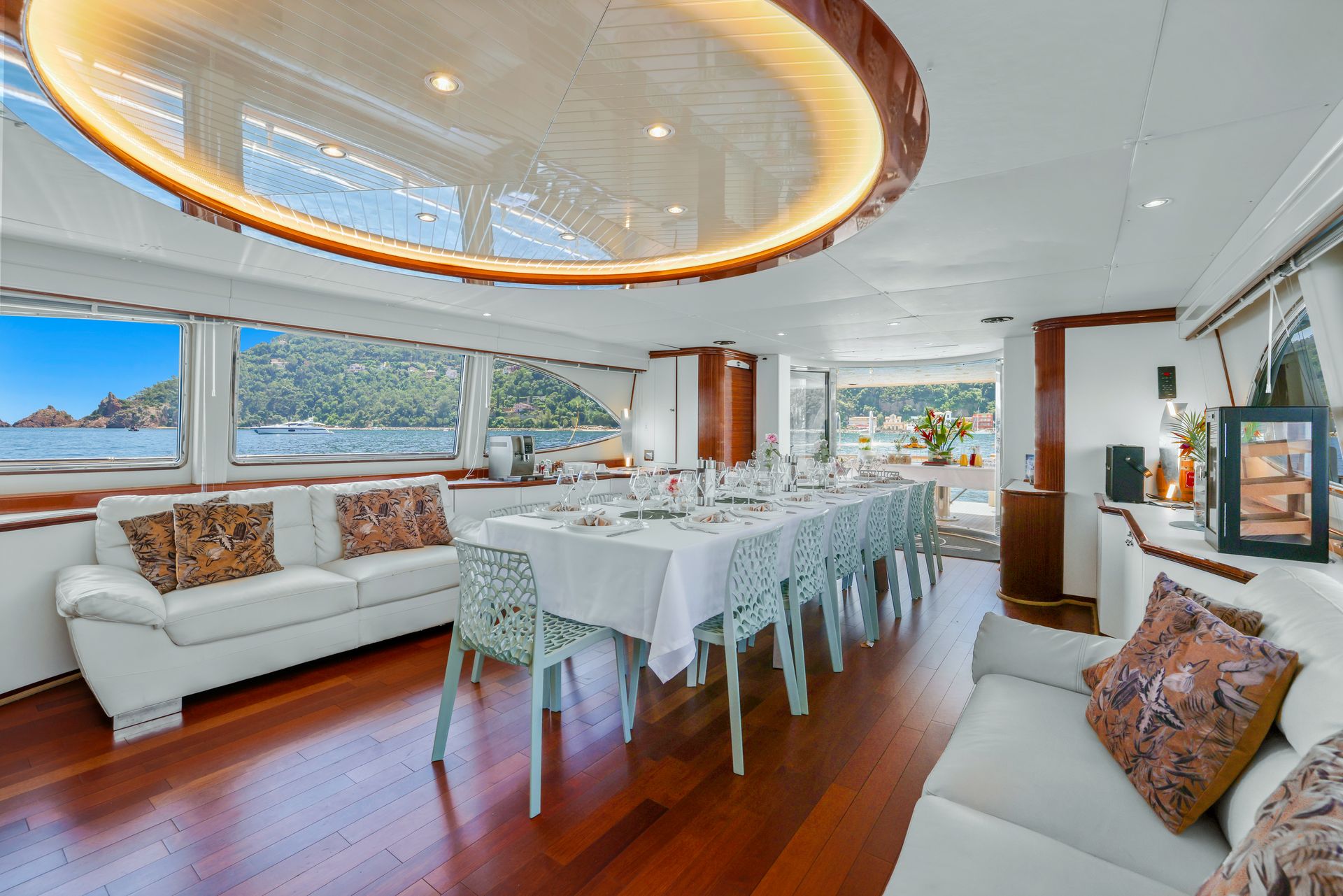 ACCAMA DELTA is one of the very few high-capacity motoraychts available for charter in the Mediterranean. She is licensed to cruise with up to 36 guests making her ideal for special events or large family and friend groups. Serviced by 5 international crew members, who are known to go above and beyond client expectations, captain Mathieu’s team will truly make your experience onboard ACCAMA DELTA memorable!