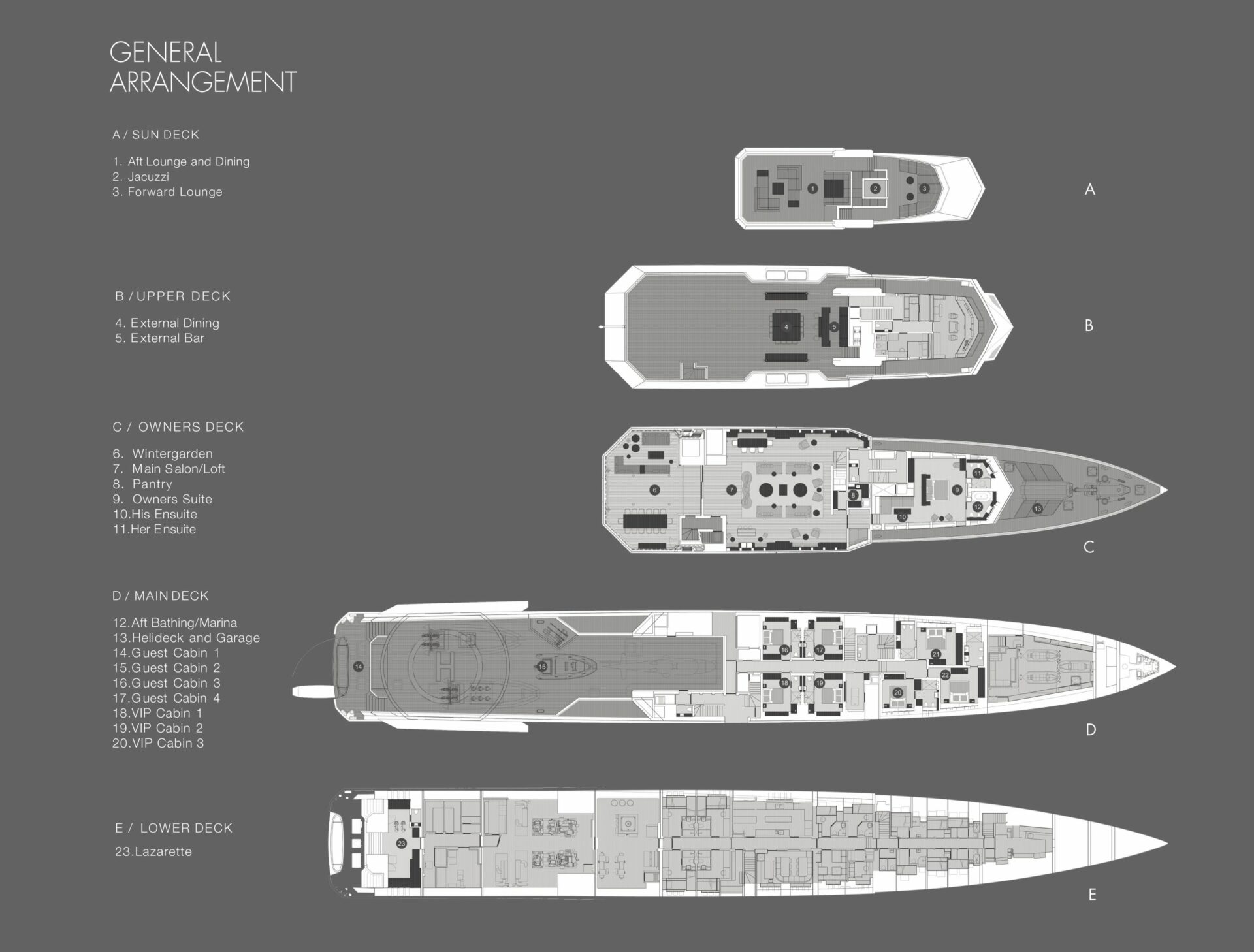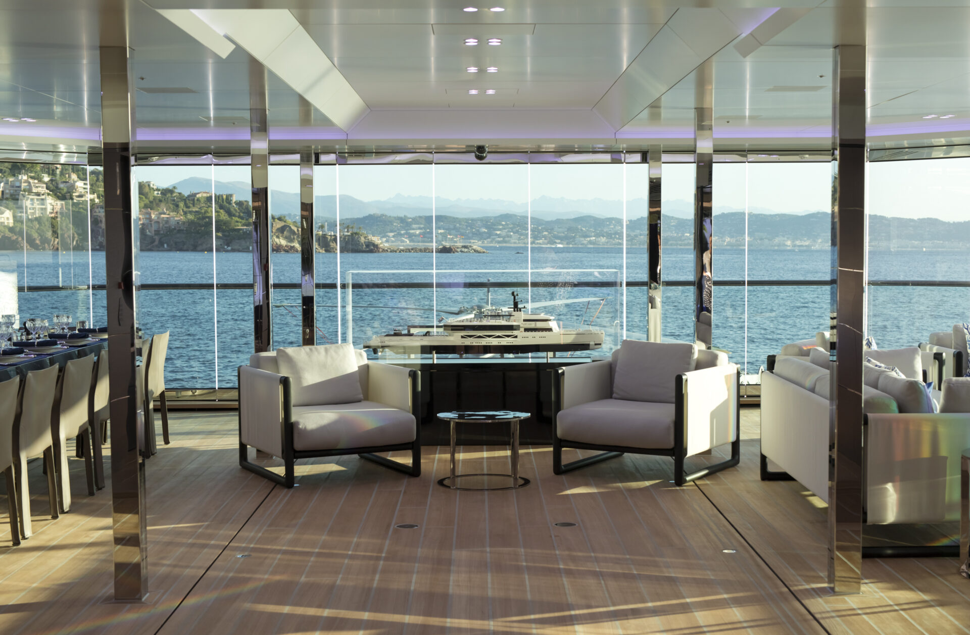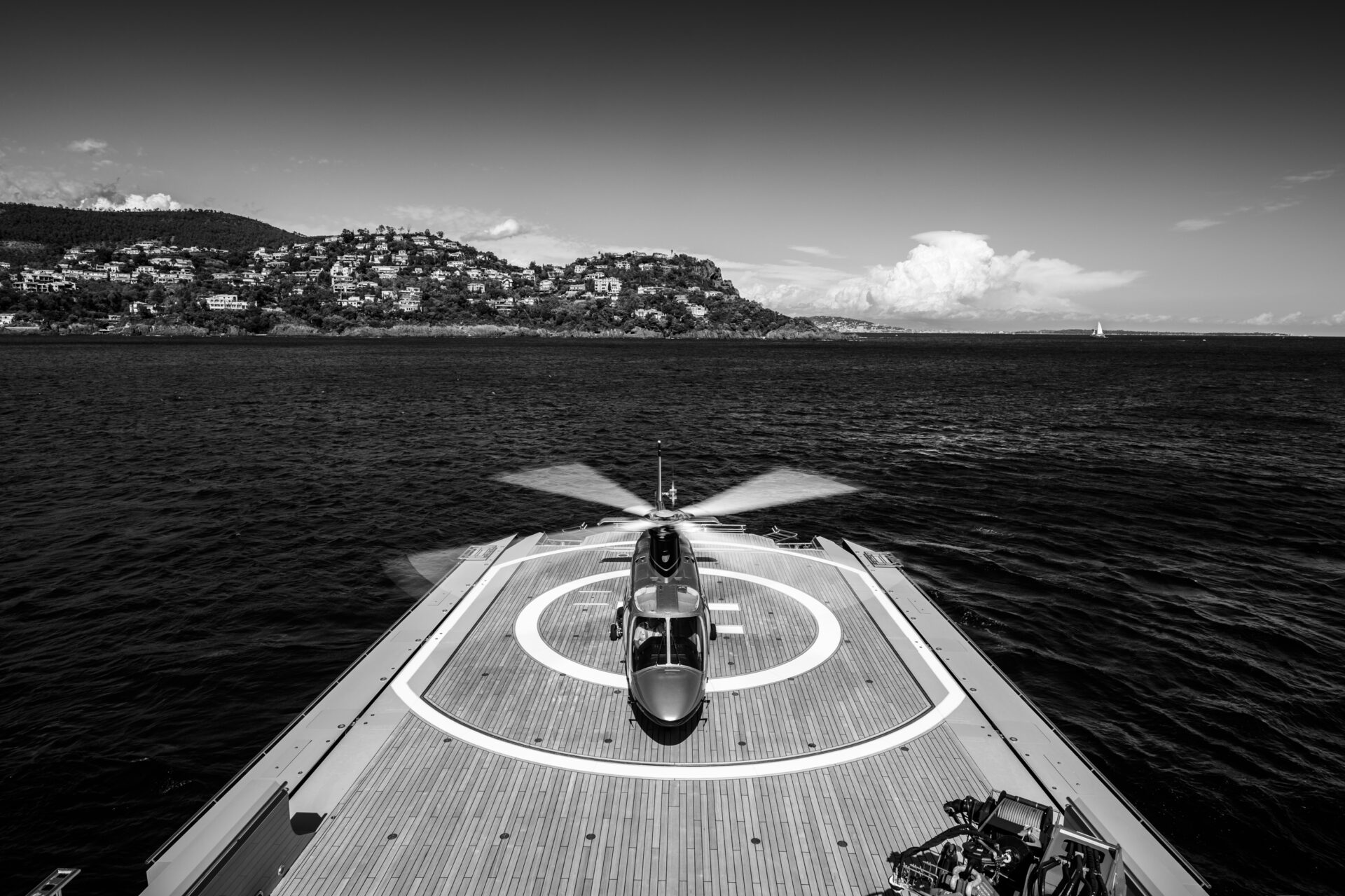 Fully certified commercial Heli pad. Clients can bring their own, charter the yacht’s (AgustaWestland AW109 with a capacity of 8 – including the pilot) or charter another helicopter. Full commercial Heli deck night rated. Max heli weight is 3,600kg – so up to a EC145. The rate is EUR 3.600 per hour. Stand-by fee to be added as well (€10,000) + Landing/ Handling fees.