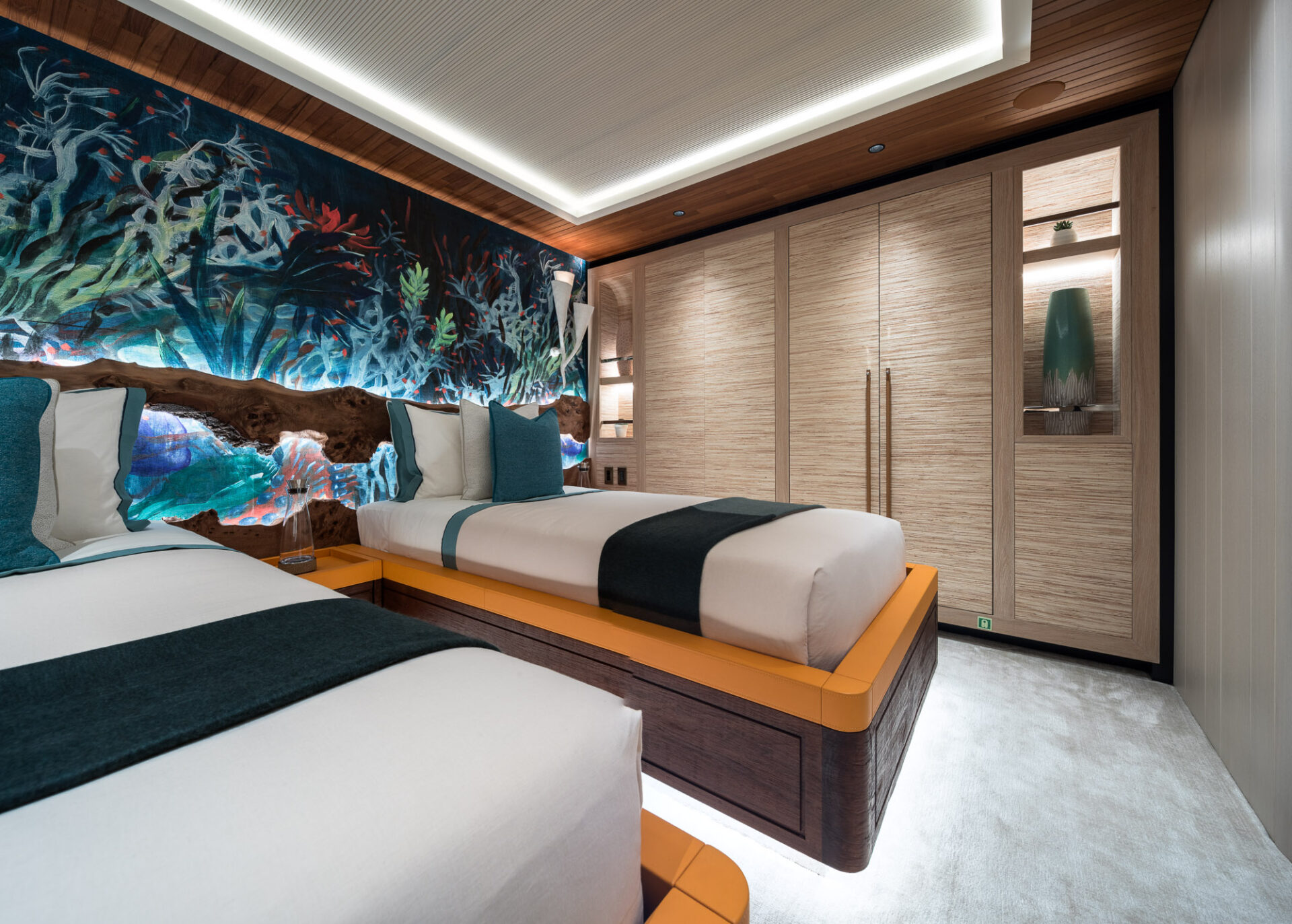 Accommodating up to10 guestsin complete luxury,King Benjialso provides quarters for12 crew, ensuring an exceptional level of service on board. Built with asteel hullandaluminium superstructure, she is powered by twinCaterpillar engines, delivering a top speed of14.5 knotsand supported by a fuel capacity of63,900 litresfor extended cruising.