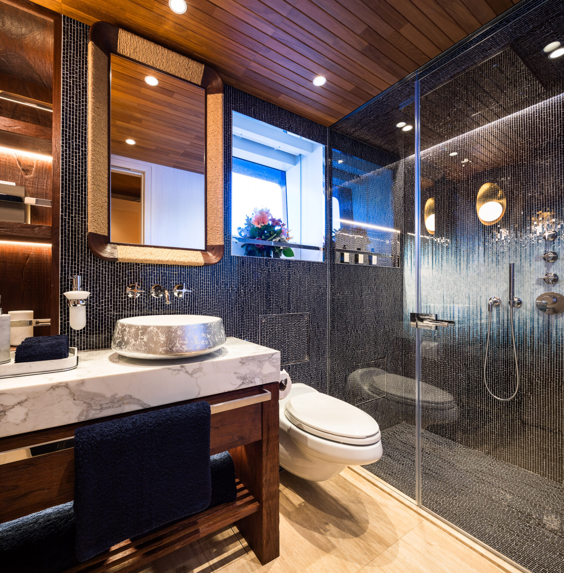 Her striking exterior lines and naval architecture were created byGregory C. Marshall Naval Architect Ltd., while the refined interiors are the work ofDesign Unlimited, blending style with comfort across all decks.